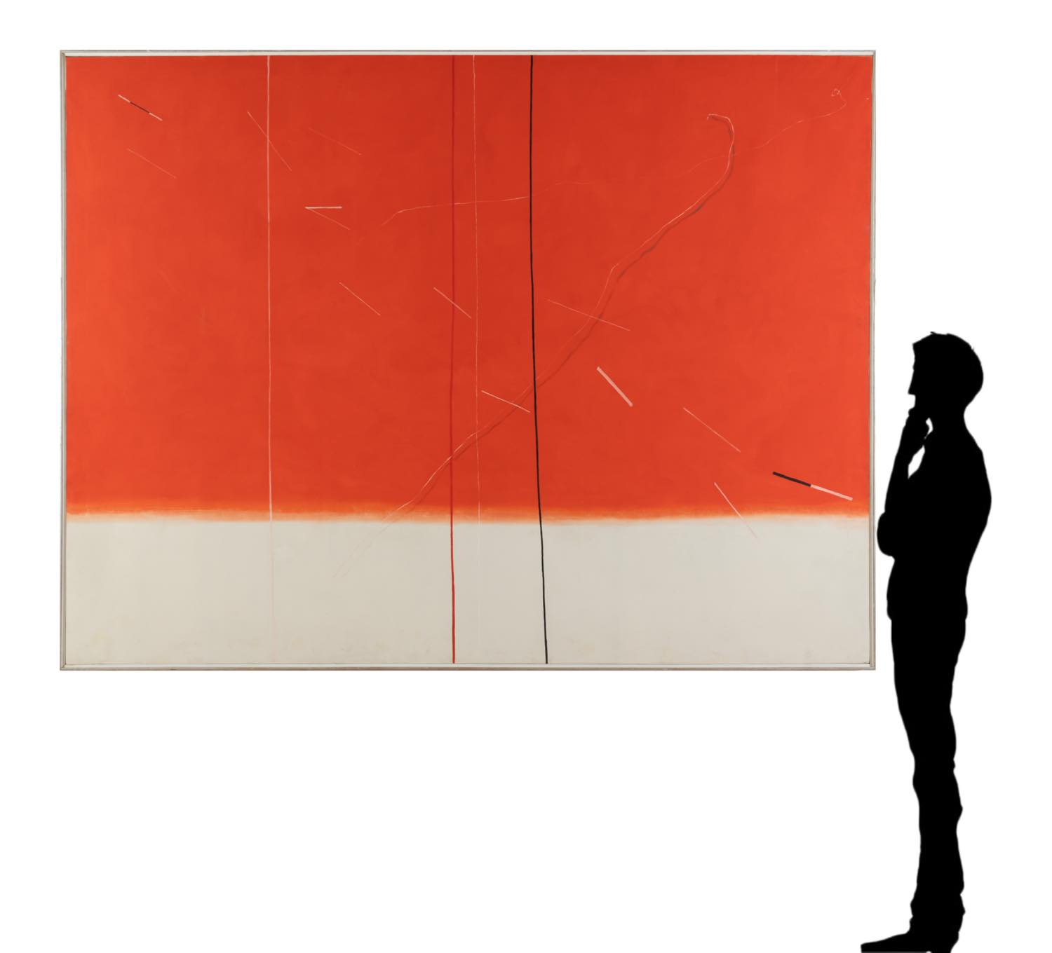 Valentino Vago (Barlassina 1931 - Milano 2018), “E. 293”, 1973.Olio su tela, reca al retro firma e data sulla tela e firma e titolo sul telaio, H cm 240x180 (lieve difetto) - Notes: Opera accompagnata da scheda per autentica n. 316 con data, titolo, dimensioni e tecnica e iscrizione per autenticità datata “Milano 25-3-74” a firma dell’artista con timbri della Galleria Morone – Milano e della Galleria D’arte San Luca – Bologna.