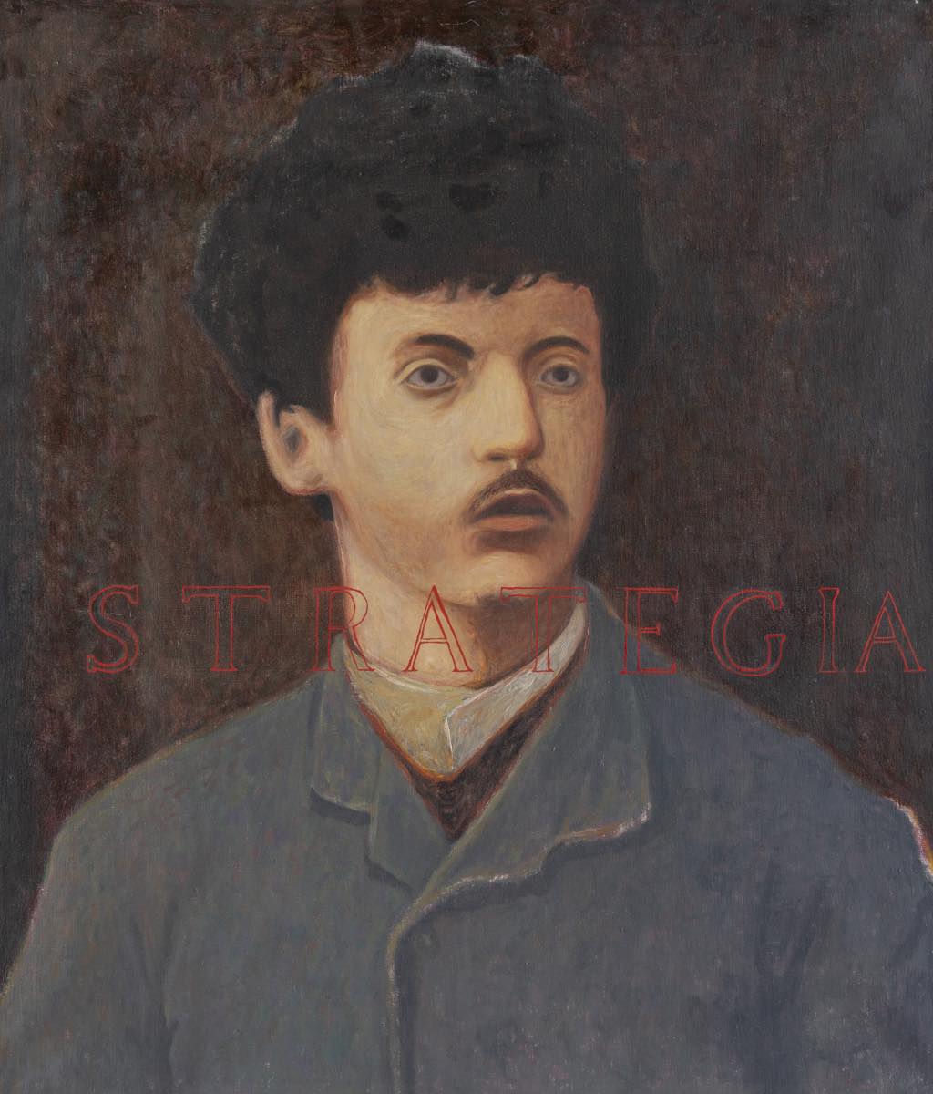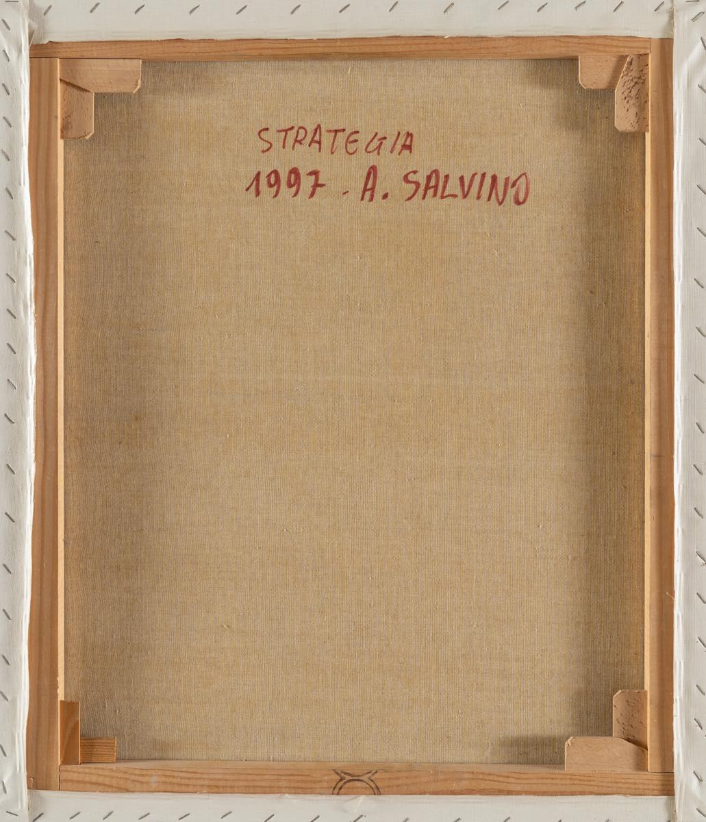 Andrea Salvino (Roma 1969), “Strategia”, 1997.Olio su tela, reca al retro titolo, data e firma, H cm 70x59