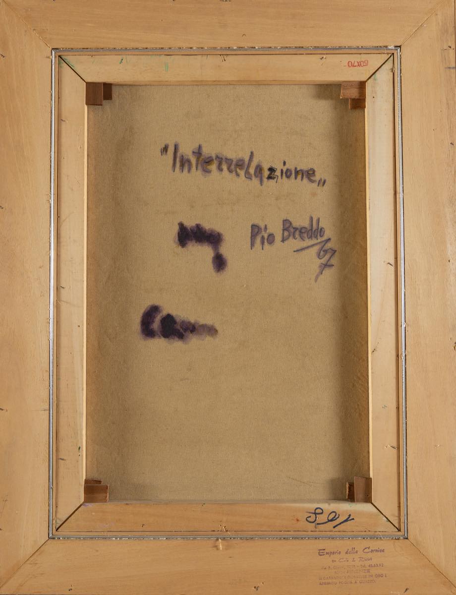 Pio Breddo (Venezia 1945), “Interrelazione”, 1967.Olio su tela, firmato e datato in basso a destra, reca al retro titolo, firma e data, H cm 71x51