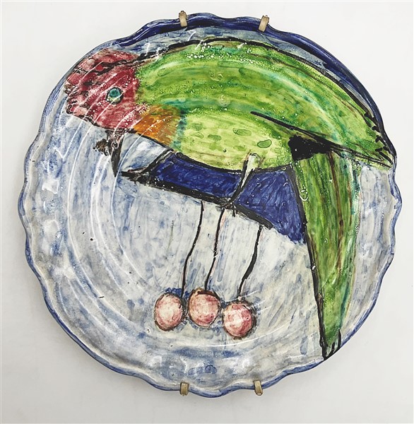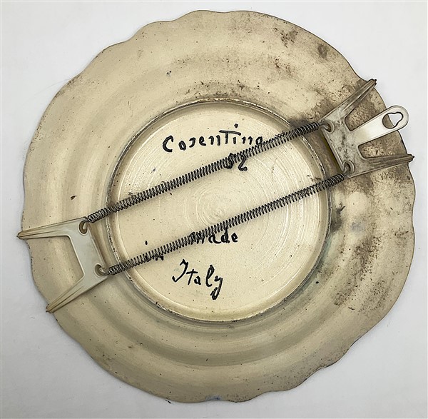 Gino Cosentino Piatto in terracotta dipinta e sotto vetrina diam cm 25 firmato,