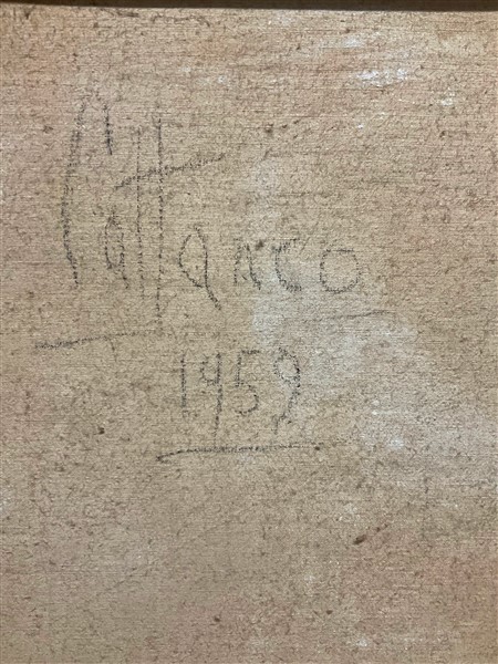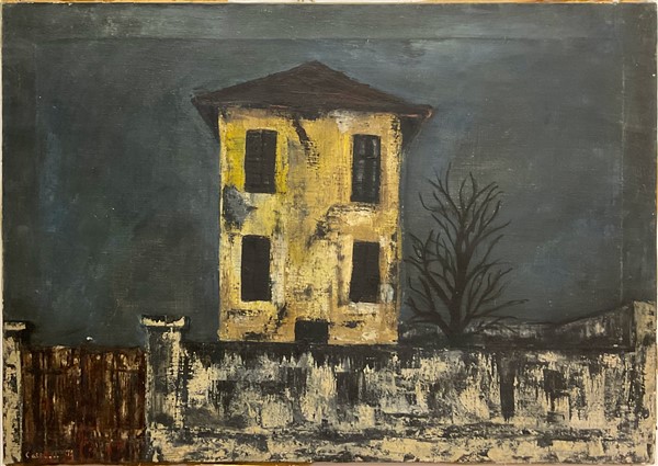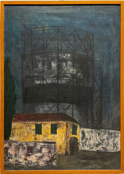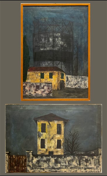 Milo Cattaneo "Gasometro" e "Muro e solitudine" 1959 e 1960 due oli su tela cm 7