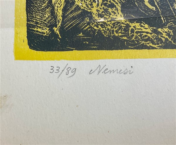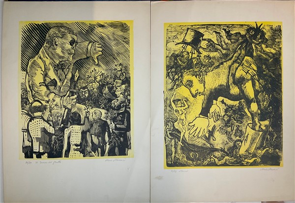 Mino Maccari "Il terrore nel ghetto" e "Nemesi" due xilografie a colori cm 47x3