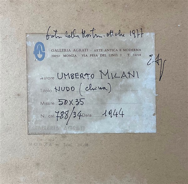 Galleria Agrati, Monza (etichetta al retro); collezione privata, Milano