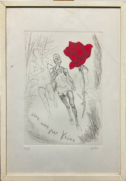 Renato Guttuso "Una rosa per Keino" acquaforte e acquatinta a colori (lastra cm