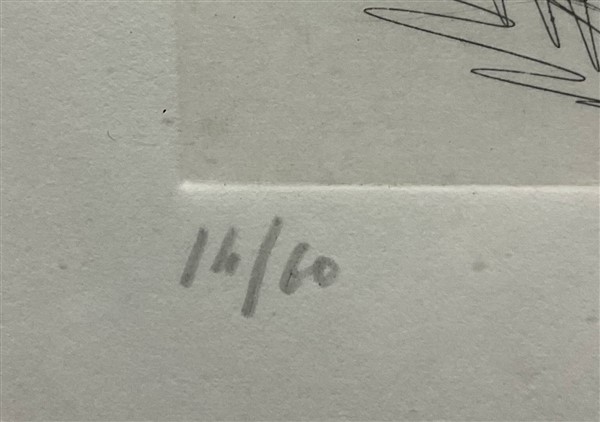 firmata e numerata 14/60 in basso a matita. In cornice (difetti)