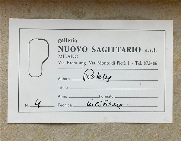 Galleria Nuovo Sagittario, Milano (etichetta al retro); collezione privata, Milano