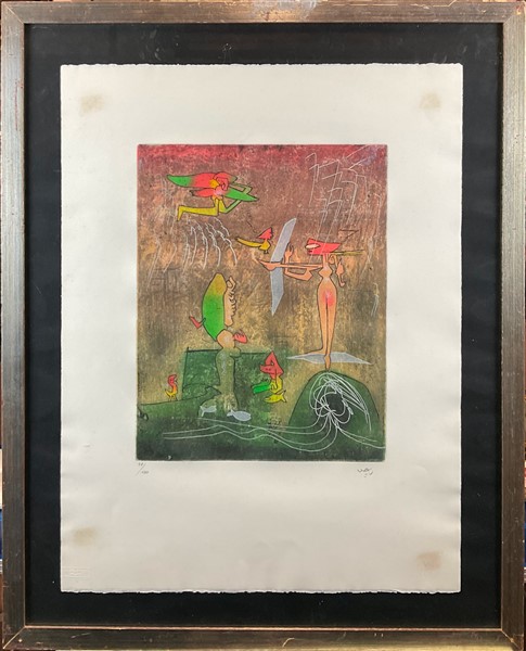 Roberto Matta "Senza titolo" acquaforte e acquatinta a colori (lastra cm 40x31,