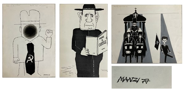 Riccardo Manzi Tre vignette satiriche per "Il Giornale" di Indro Montanelli, a c
