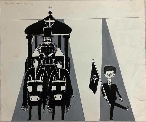 Tre vignette satiriche per "Il Giornale" di Indro Montanelli, a china e tecnica mista su carta, di soggetti e misure diverse