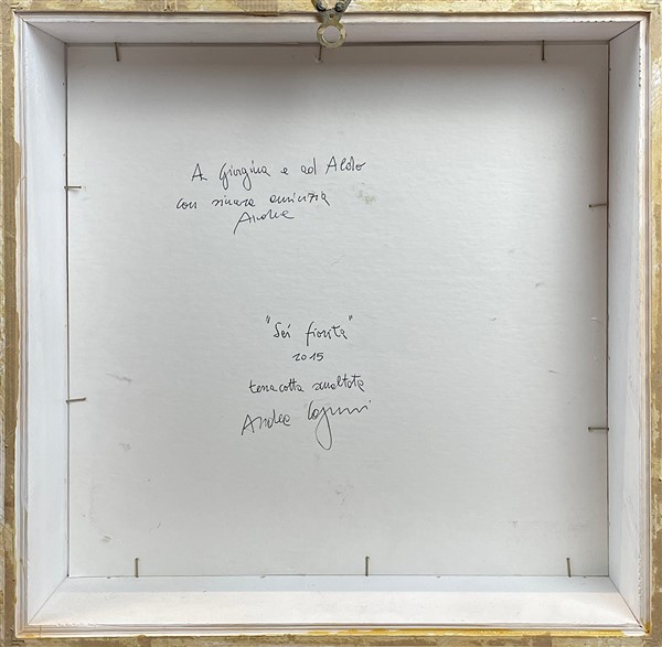 ANDREA CAPUCCI "Sei fiorita" 2015 terracotta smaltata montata su cartoncino h sc
