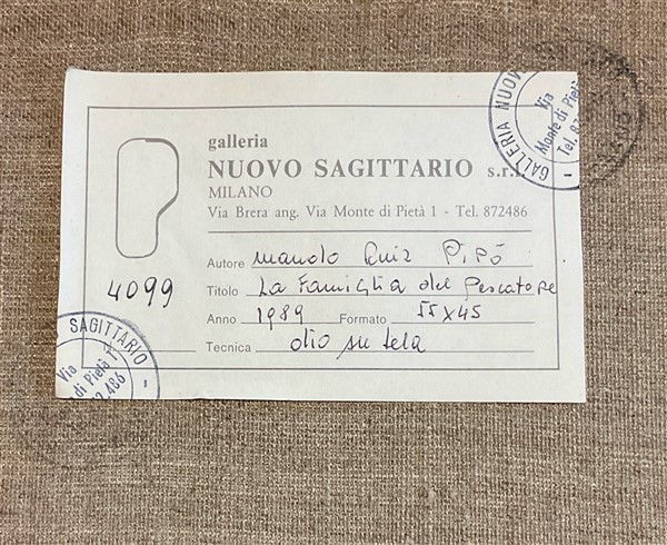Manolo Ruiz Pipo "La famiglia del pescatore" 1989 olio su tela cm 45x55 firmato