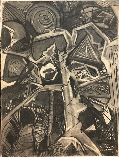 Ignoto "Composizione astratta" carboncino su carta intelata