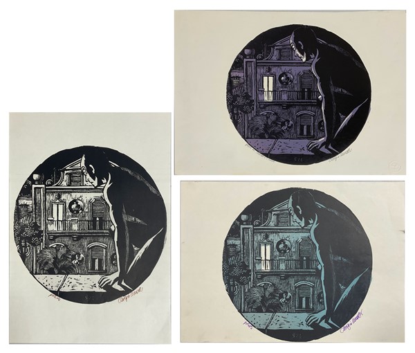 Sergio Ceccotti "Diabolik in agguato" 1974 tre linoleum - prove di stampa del me