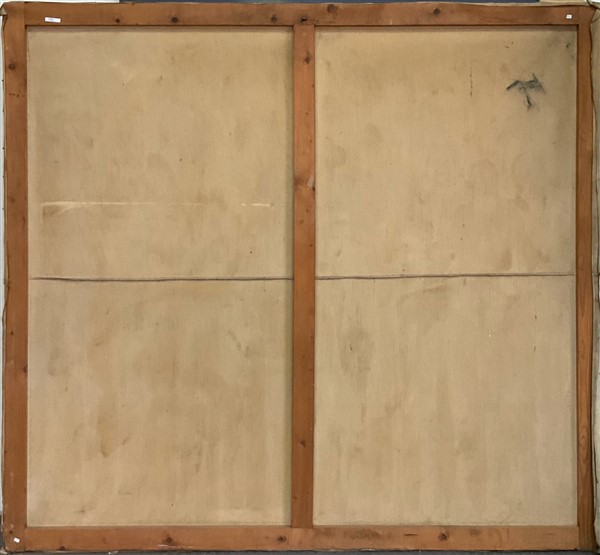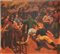 Mario Menin (Attr.) "Il Perseo" olio su tela cm 170x190 etichetta in basso al c