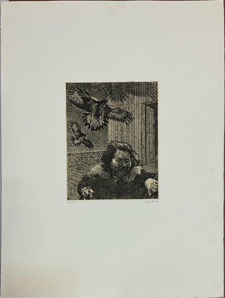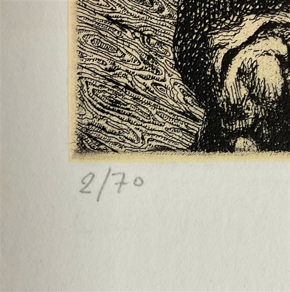 Lotto composto da due acqueforti di Ranieri Gherardi Del Testa di soggetto diverso (foglio cm 50x35) firmate a matita e una litografia a colori raffigurante Amleto di Fabrizio Clerici (cm 33x20,5) firmata e numerata III/XII