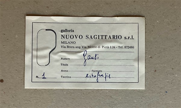 Galleria Nuovo Sagittario, Milano (etichetta al retro); collezione privata, Milano
