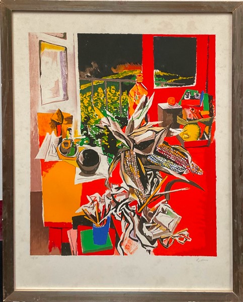 Renato Guttuso "Composizione" 1980 litografia a colori cm 75x55 firmata e numera