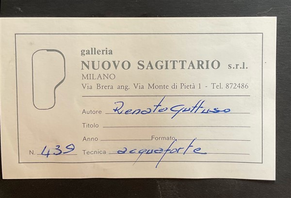 Renato Guttuso "Senza titolo" acquaforte (lastra cm 24,5x20; foglio cm 69x49) f