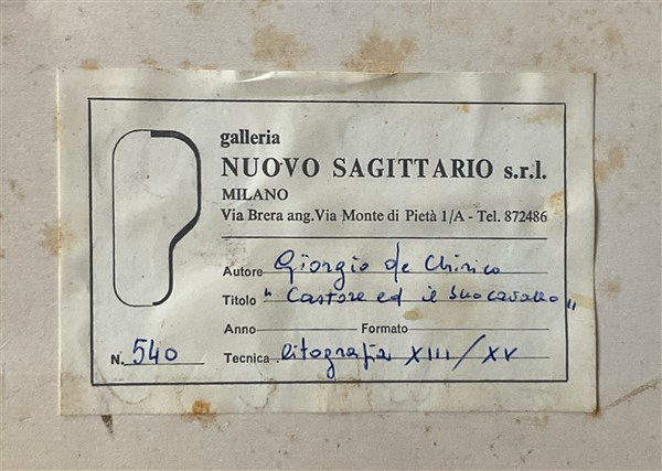 Lot 2306 | Giorgio De Chirico "Castore ed il suo cavallo" 1970 litografia a colori cm 52x69