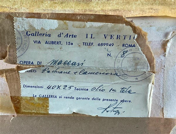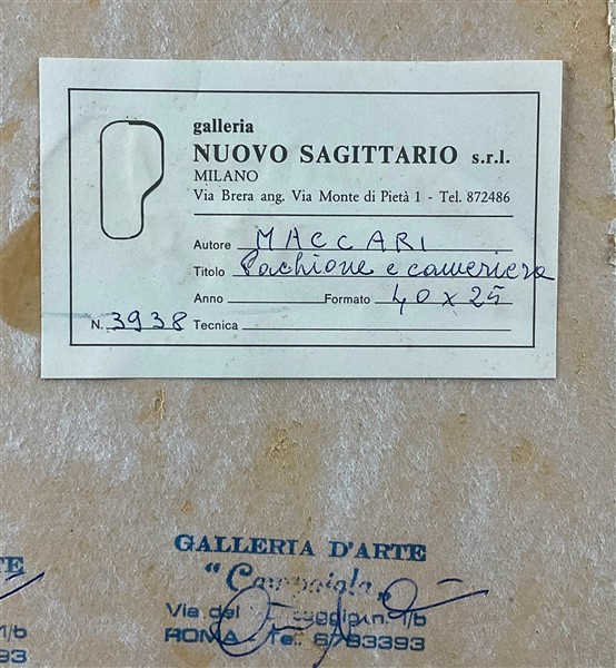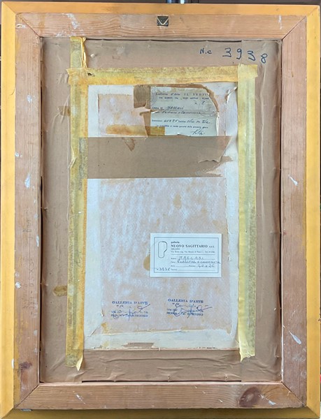 Galleria d'Arte il Vertice, Roma (etichetta al retro); Galleria d'arte Campaiola, Roma (timbri al retro); Galleria Nuovo Sagittario, Milano (etichetta al retro); collezione privata, Milano