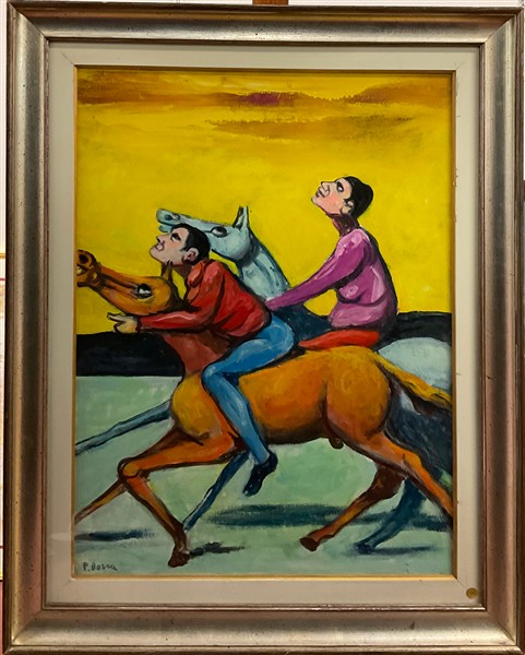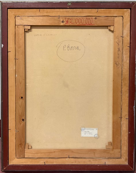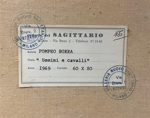 Pompeo Borra "Uomini e cavalli" 1969 olio su tela cm 80x60 firmato in basso a si