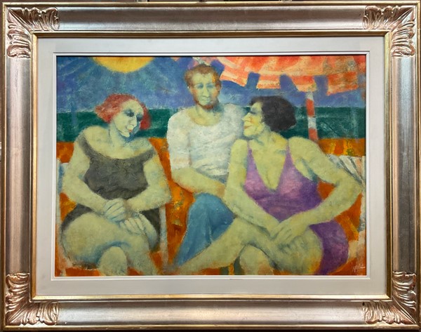 Remo Squillantini "Chiacchiere" olio su compensato cm 50x70 firmato in basso a