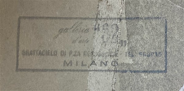 firmato, datato, locato e iscritto in basso; timbro dell'artista al retro. In cornice (difetti e mancanze)