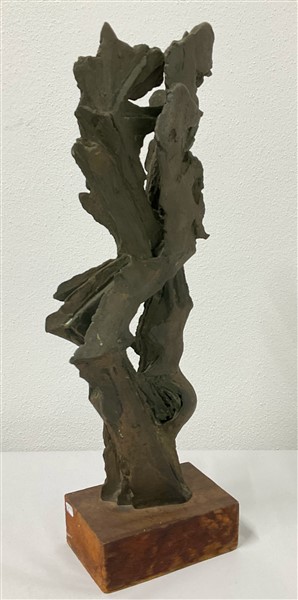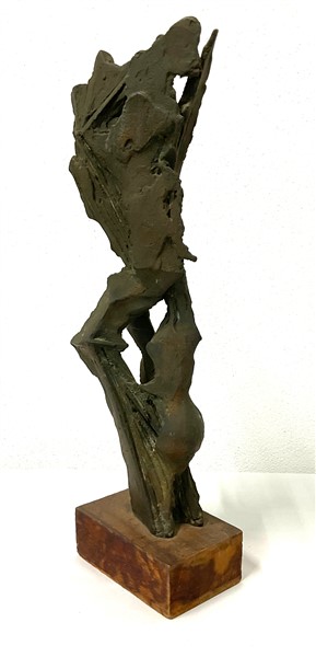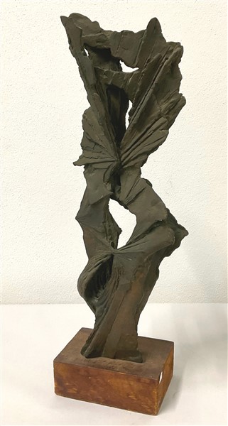 Toni Fabris "Contrasti" 1964 scultura in bronzo su base in legno h scultura cm 4
