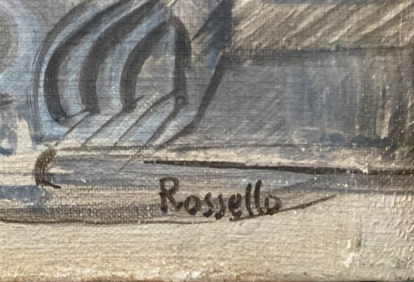Mario Rossello "Uomo e gatto" 1965 olio su tela cm 69,5x60 firmato in basso a de