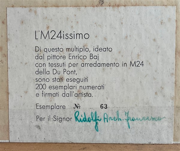 Enrico Baj "Mr. Dupont de Nemours" 1969 multiplo realizzato con tessuti M24 dell