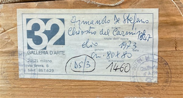 Lot 2415 | Armando De Stefano "Chiostro del Carmine 1647" 1973 olio su tela cm 82x80,5 firm