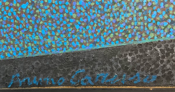 BRUNO CARUSO "Estasi" 1970 olio su tela rintelata cm 68x117 firmato in basso a d