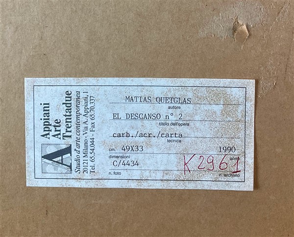 Matias Quetglas "El Descanso n. 2" 1990 carboncino e acrilico su carta cm 48x32,