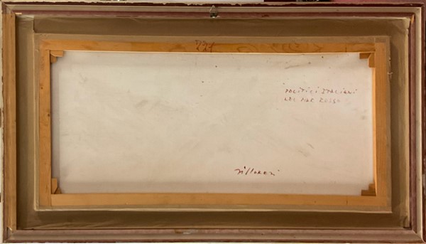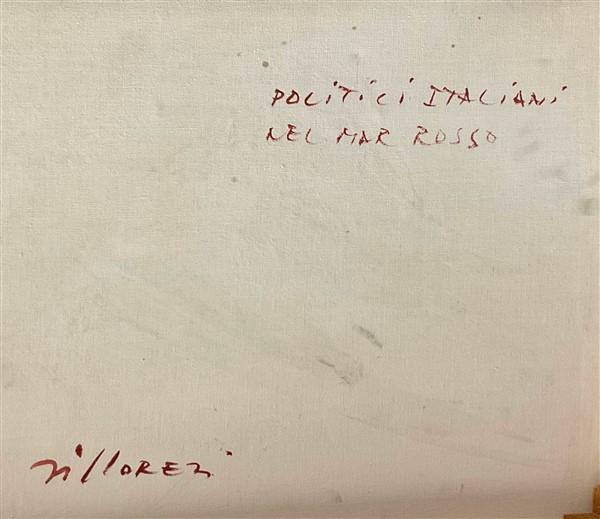 Franco Villoresi "Politici italiani nel Mar Rosso" olio su tela cm 50x100 firma