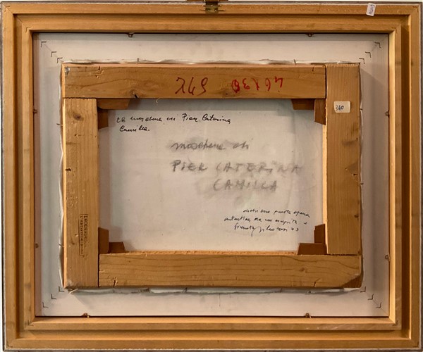 Franco Villoresi "Maschera di Pier Caterina Camilla" olio e collage su tela cm