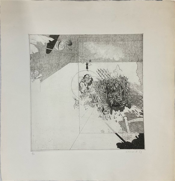 Gianfranco Ferroni "Giardino di Tradate" 1963 acquaforte (lastra cm 32,5x31,5; f