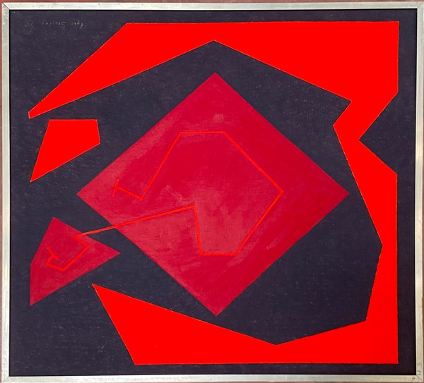 EGON SVARRER "Composizione" 1975 olio su tela cm 54x60 firmato e datato in basso