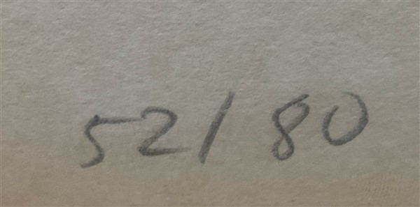 firmata, titolata, datata e numerata 52/80 in basso a matita, edizione Jabik & Colophon Editori. In cornice (difetti)