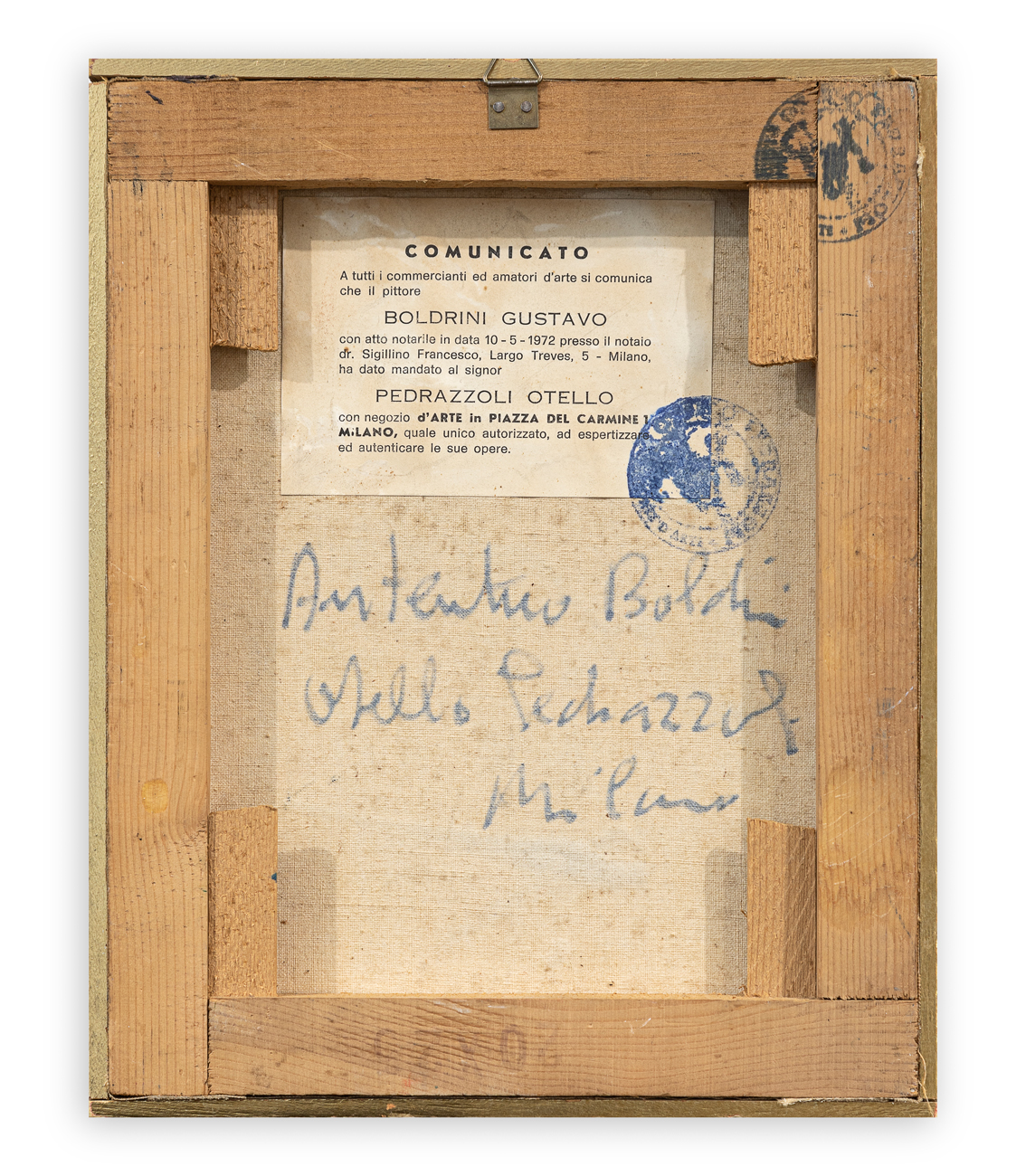 Etichetta, timbro, località (Milano) e dichiarazione di autenticità a cura di Otello Pedrazzoli al retro