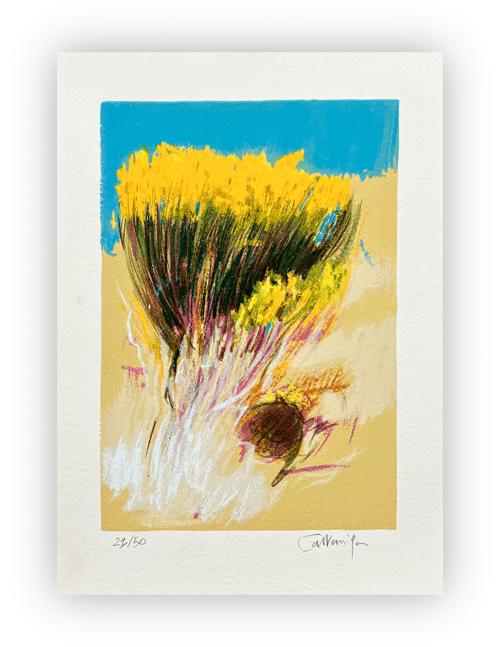 Firma e numerazione (Esemplare 21/50) a matita al fronte