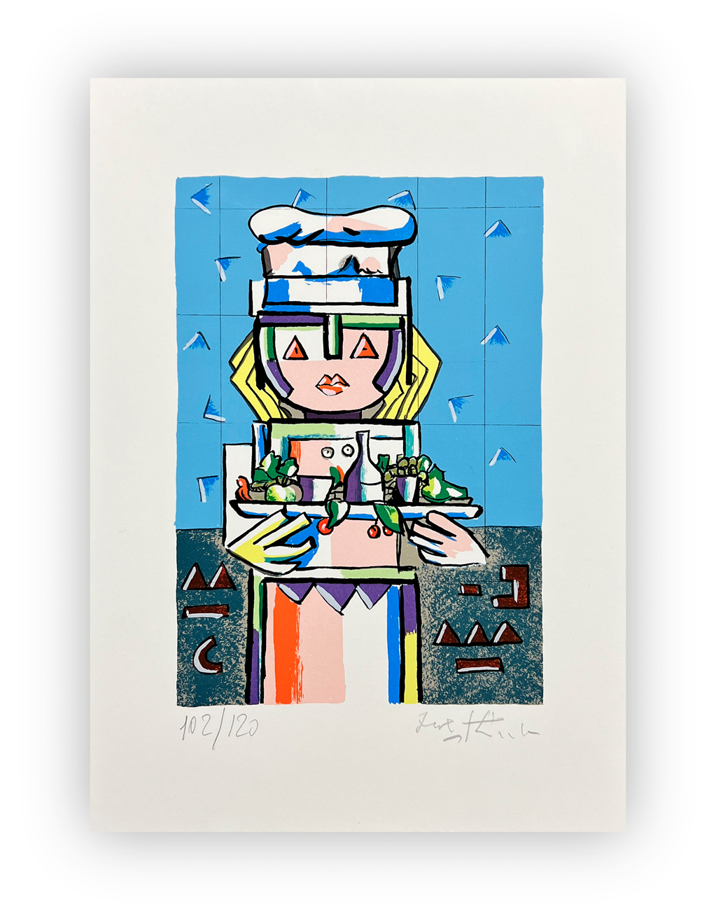 Firma e numerazione (Esemplare 102/120) a matita al fronte