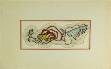 Piero Fonio ROBOT tecnica mista su carta, cm 14x31 firma lievi difetti