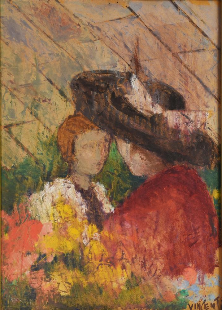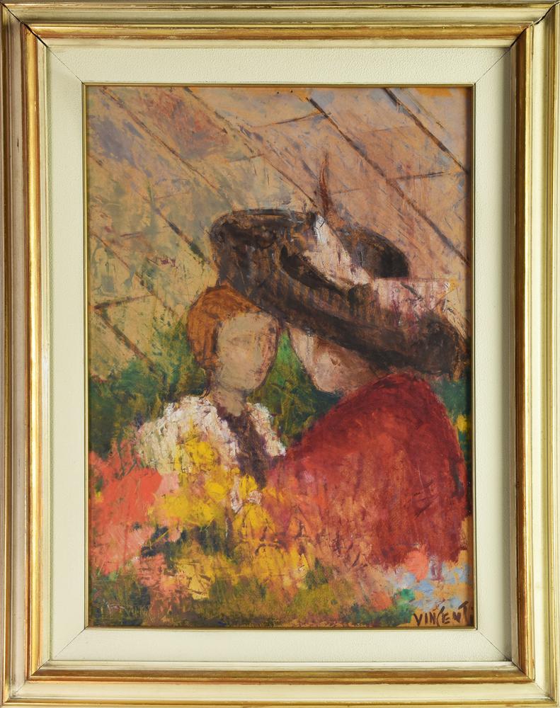Ezio Vincenti DONNE E FIORI pastello grasso su cartone, cm 50x36 firma sul...