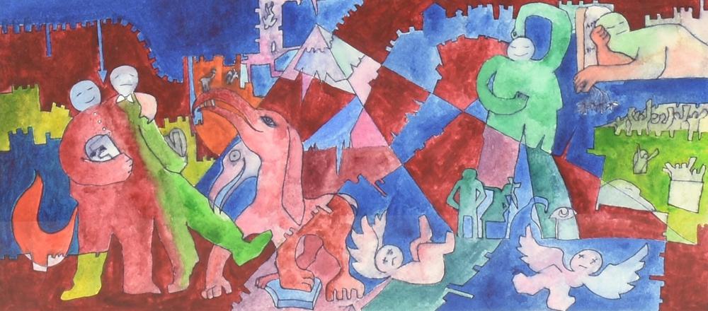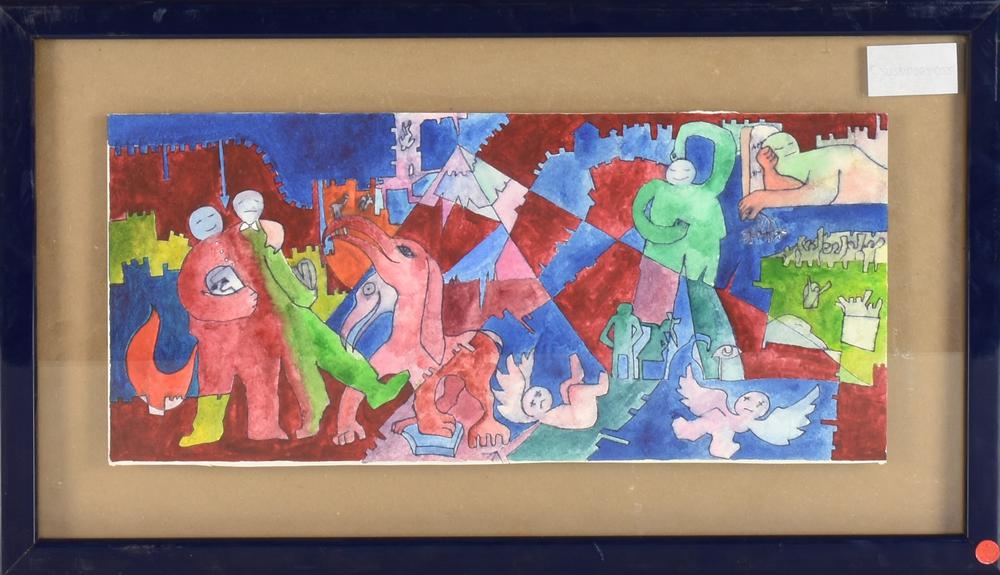 Ignoto SENZA TITOLO acquarello su carta, cm 20x45 sul retro: firma e data...