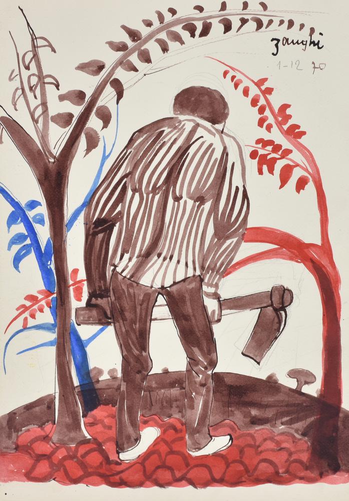 Zanghi CONTADINO tecnica mista su carta, cm 50x35 firma e data eseguita nel 1970