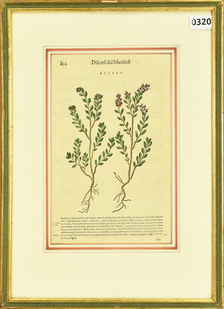 Pietro Andrea Mattioli ALISSO xilografia acquarellata, cm 50x35