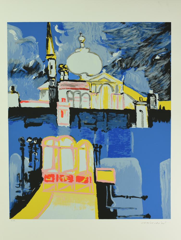 Remo Brindisi VENEZIA, CHIESA DELLA SALUTE serigrafia su carta, cm 70x50; es....