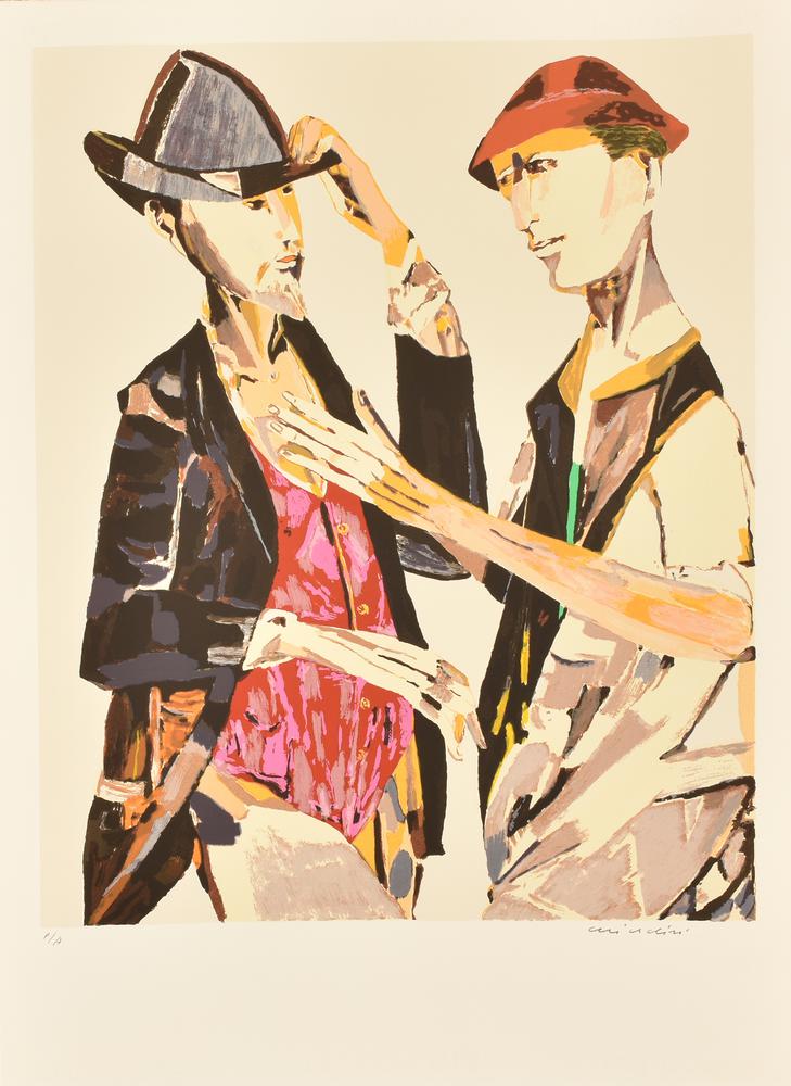 Lot 12 | Remo Brindisi DUE FIGURE litografia su carta Fabriano, cm 70x50; es. P.A. firma
