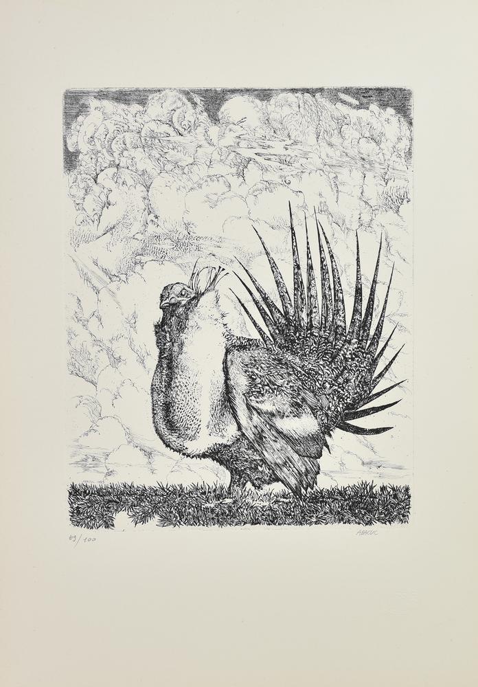 Abacuc VOLATILE, 1983 incisione su carta, cm 31x24,5, su foglio cm 50x35; es....