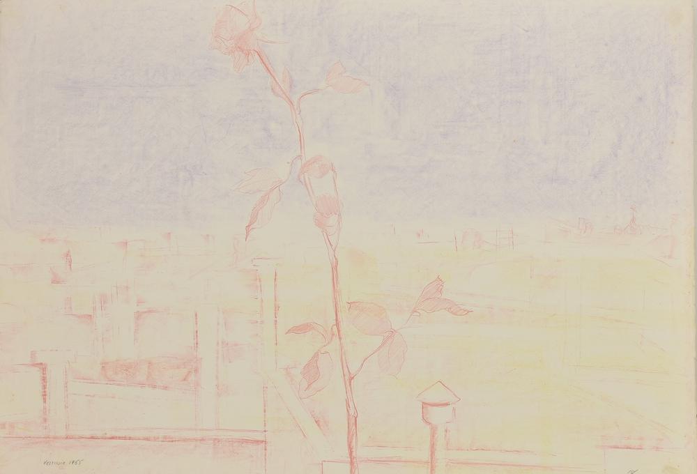 Pasquale Verrusio LA ROSA SUI TETTI litografia, cm 48,5x70,5, su foglio cm...